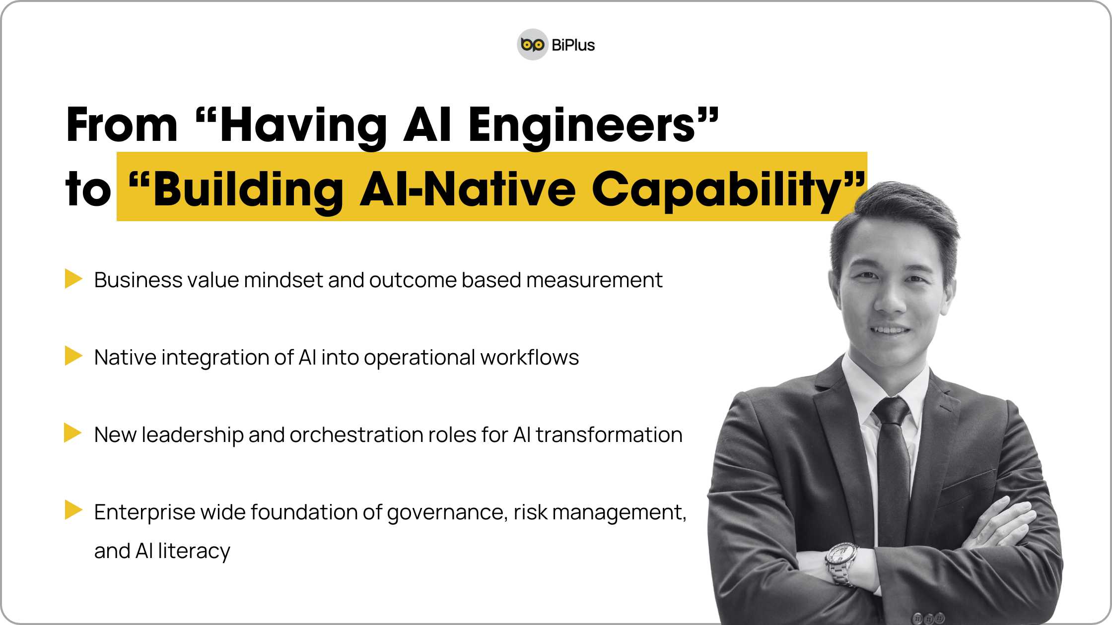 Through consulting, implementation, and AI-Native training programs, including the AI-Native Foundation, BiPlus partners with organizations to build the capabilities required to bring AI from experimentation into daily operations. For organizations still defining their AI transformation direction, engaging with BiPlus early can help clarify the problem space and focus efforts on steps that deliver tangible business value.